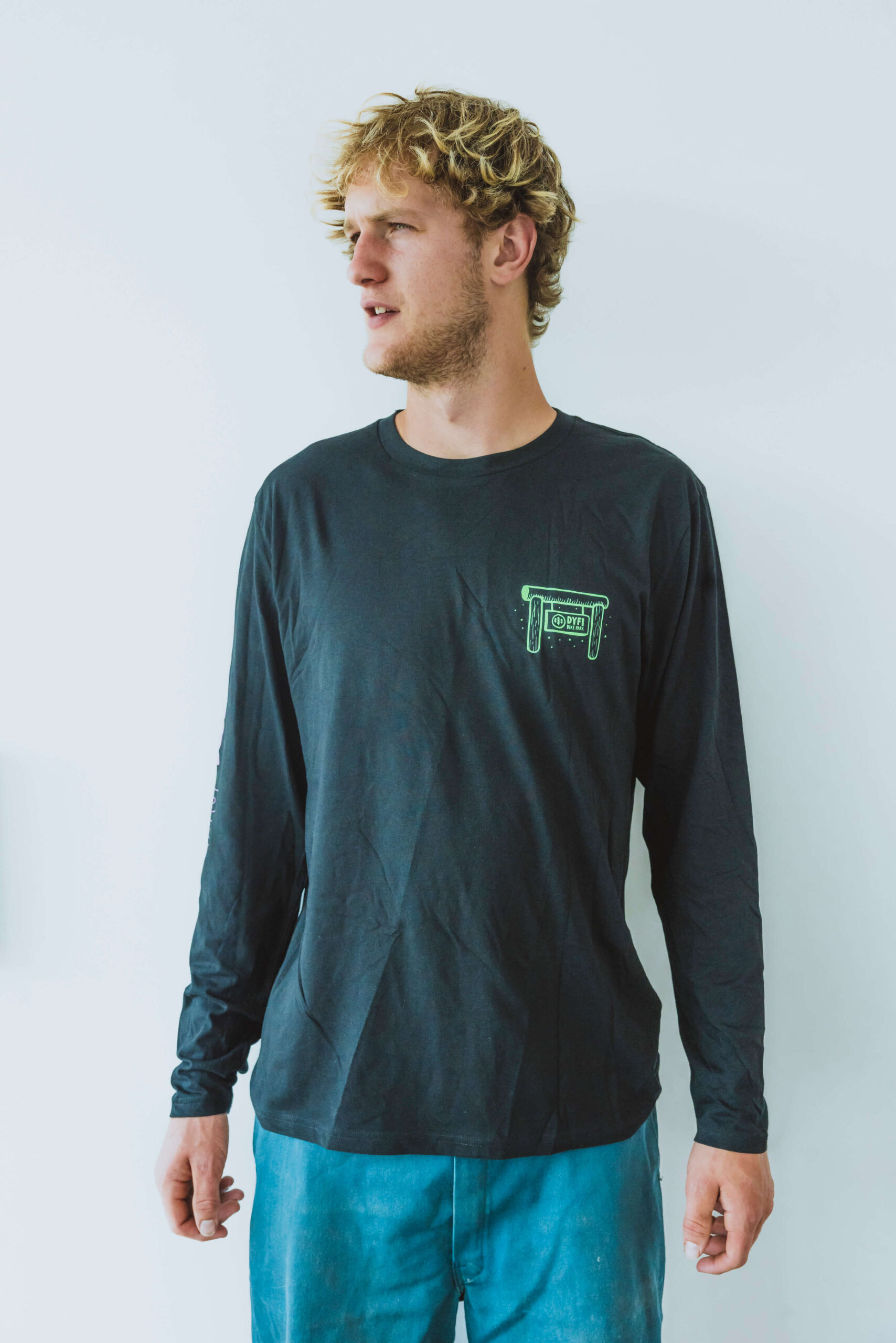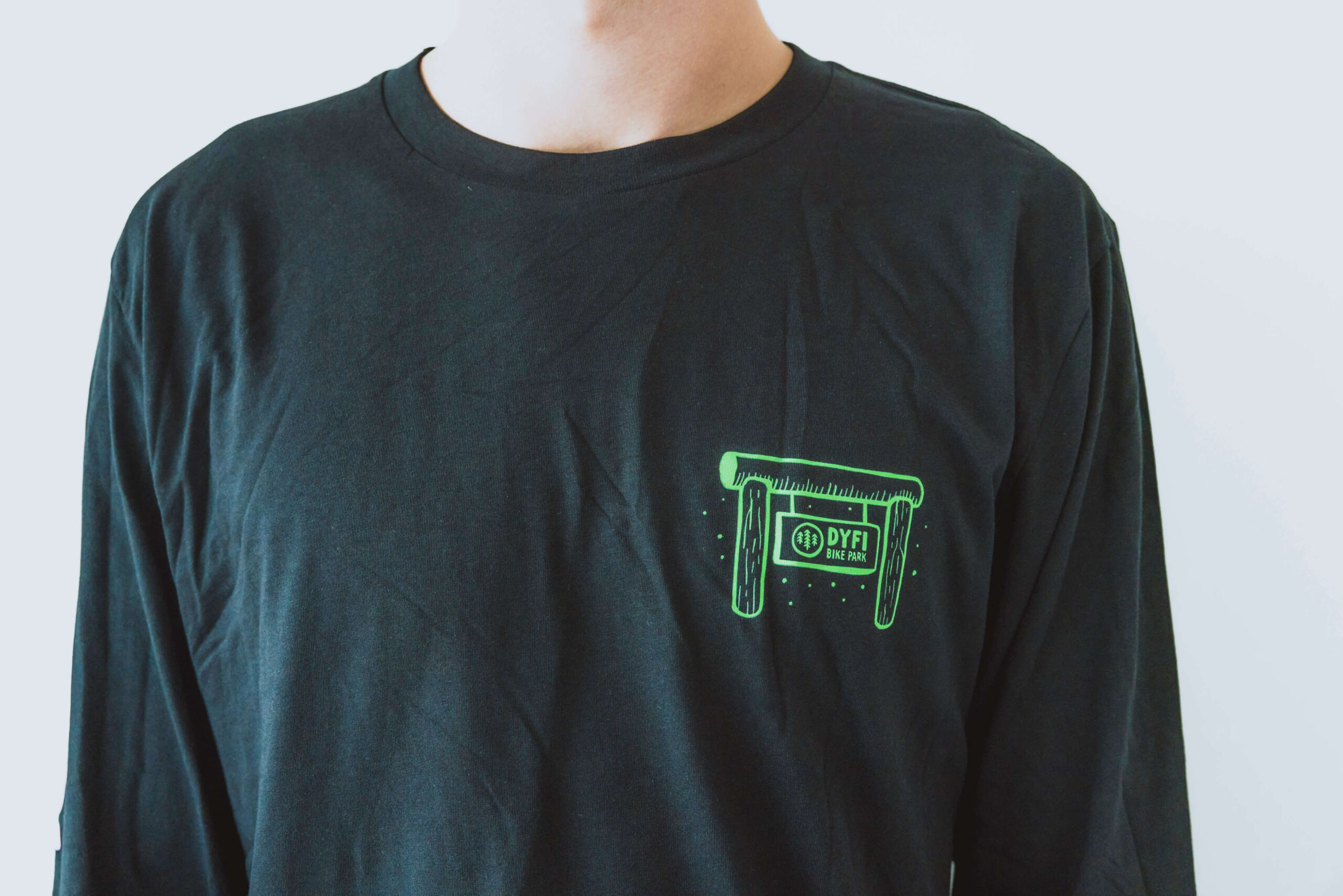 Our Cedar long-sleeved T in black with artwork inspired by the huge cedar beam that supports our café and shop area, once found in the Dyfi forest!