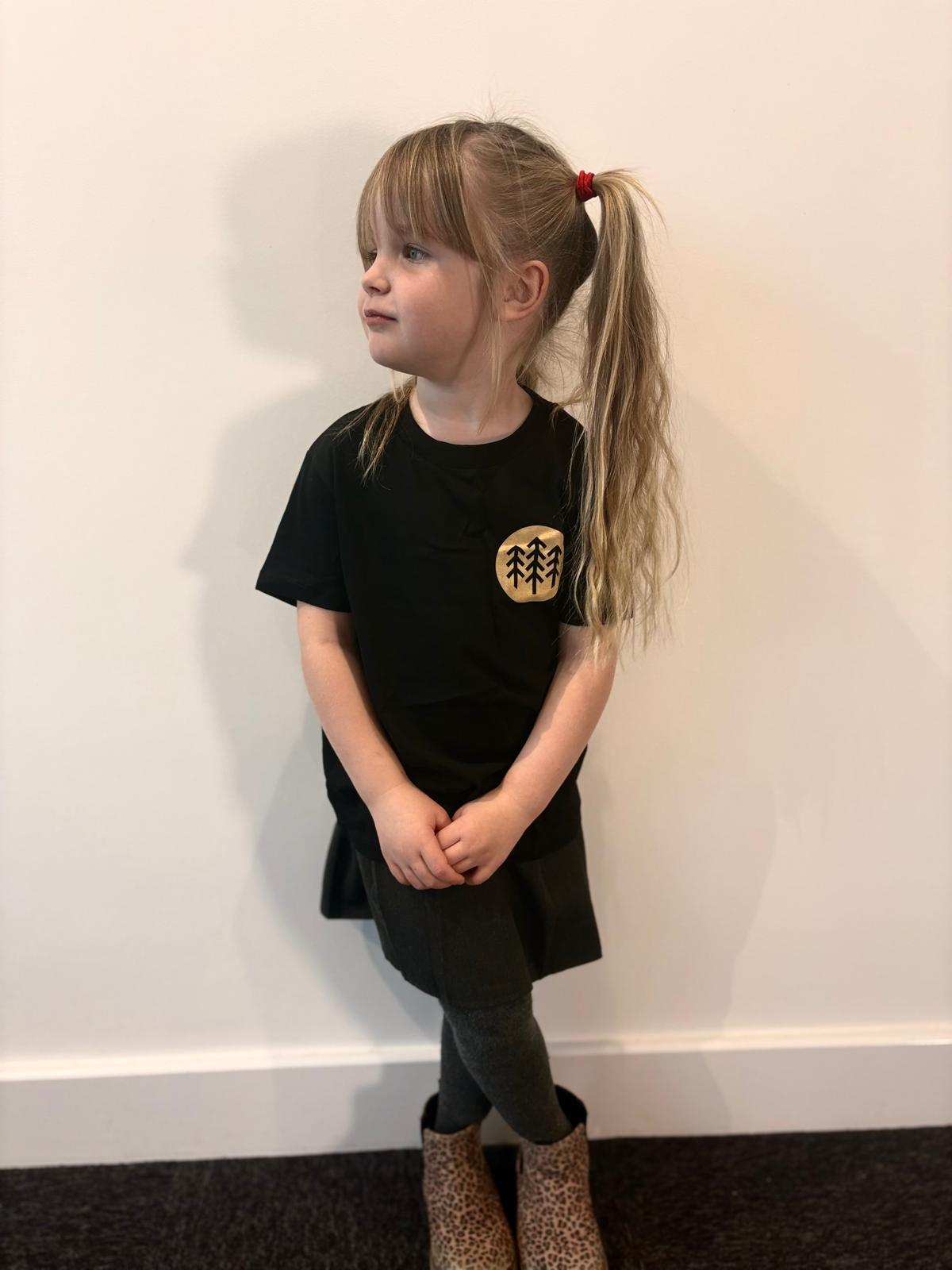 A classic black kids T-shirt with our original Dyfi 3 trees logo for your mini shredder!